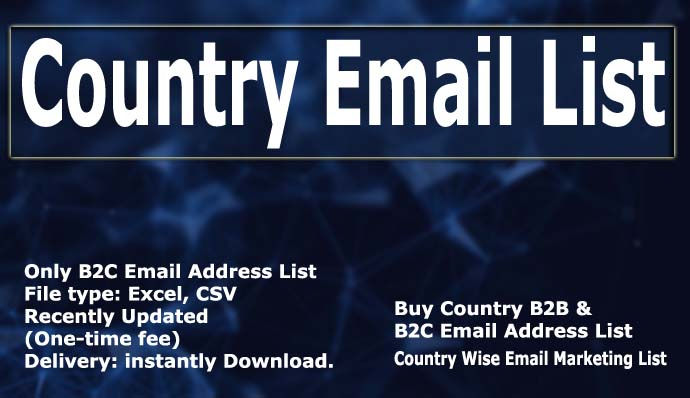 You could request these Country Email List folks to join your opt in email lists. Contacts are always excellent prospects. Put up Country Email List a link to your website so that they may discover what your internet business is all about. The reality is, money will basically come your way when the users and leads trust and Country Email List have confidence in you. Many people today want products or services that solve their problems and are willing to pay for it. People Country Email List are not going to invest their hard earned money on an item because of your recommendation if they don't trust you. 2) Find products and services that individuals really can use and want to have.